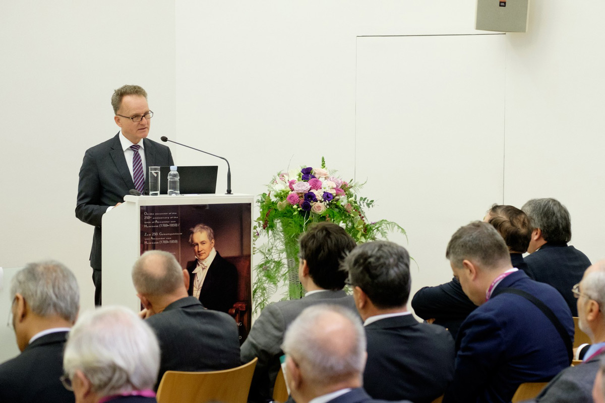 On December 11, 2019, the Humboldt Club of Serbia hosted a scientific conference at the Goethe Institute in Belgrade on the 250th anniversary of the birth of Alexander von Humboldt (1769-1859), The event was welcomed by German Ambassador to Serbia Thomas Schieb, Director of the Goethe-Institute in Belgrade Frank Baumann and President of the Club of Croatian Humboldtons Prof. dr. sc. Mile Ivanda. One of the invited speakers was the Dean of the Faculty of Croatian Studies, University of Zagreb, prof. dr. sc. Pavo Barisic, who spoke of Alexander von Humboldt as a world scientist and citizen of the world.